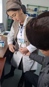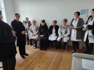 2024-yil 14-dekabr kuni Oʼzbekiston Respublikasi Prezidentining 2022-yil 26-yanvardagi “Endokrinologiya xizmatini takomillashtirish va koʼlamini kengaytirish chora-tadbirlari toʼgʼrisida”gi PQ-102-sonli qarori ijrosini taʼminlash, endokrinologiya yoʼnalishida olib borilayotgan isloxotlarni joriy etilishida soha mutaxassislarining maʼsulligini oʼrganish, hamda hududlarda amalga oshirilayotgan 40 yoshdan oshgan aholining endokrinologik skrining jarayonlarini tahlil qilish va tumanning oilaviy shifokorlari, potranaj hamshiralariga skrining oʼtkazish tartibini oʼrgatish maqsadida Аkademik Yo.X.To’raqulov nomidagi RIEIАTM Qashqadaryo filiali xodimi Karaxanova.D tomonidan Gʼuzor tumani Batosh qishlog’i Batosh-OSHPda 23 nafar xodimlariga savolnoma va algoritm bo’yicha ishlash haqida suhbat o’tkazildi. Tumanning skrining oʼtkazishga masʼul tibbiyot hodimlari toʼliq oʼrgatildi.