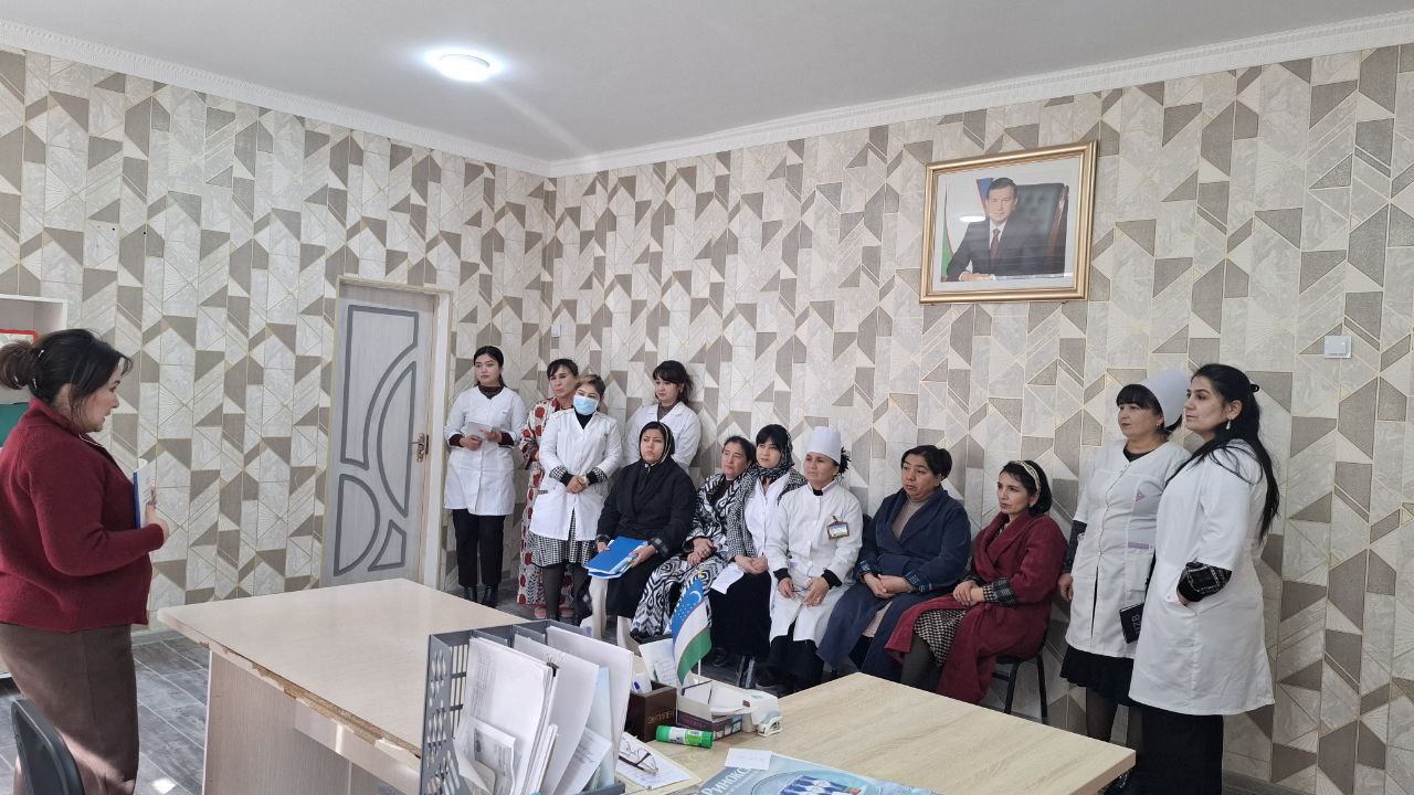 Skrining bo’yicha UASH, potranaj va amaliyotchi hamshiralar o’qitildi. Filial tomonidan ularga skrining ma’lumotlari jurnali va hujjatlari uchun maxsus papkalar tarqatildi. Shu jumladan tarqatma materiallar bilan ishlash yana bir bor tushintirildi.