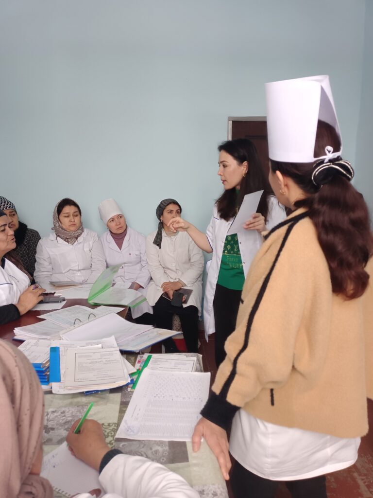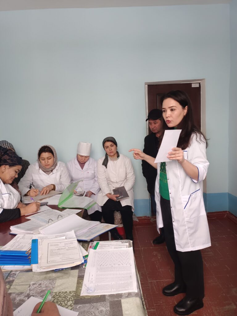 Skrining bo’yicha 4 nafar UASH, 26 nafar potranaj va 6 nafar amaliyotchi hamshiralar o’qitildi. Filial tomonidan ularga skrining ma’lumotlari jurnali va hujjatlari uchun maxsus papkalar tarqatildi. Shu jumladan tarqatma materiallar bilan ishlash yana bir bor tushintirildi.