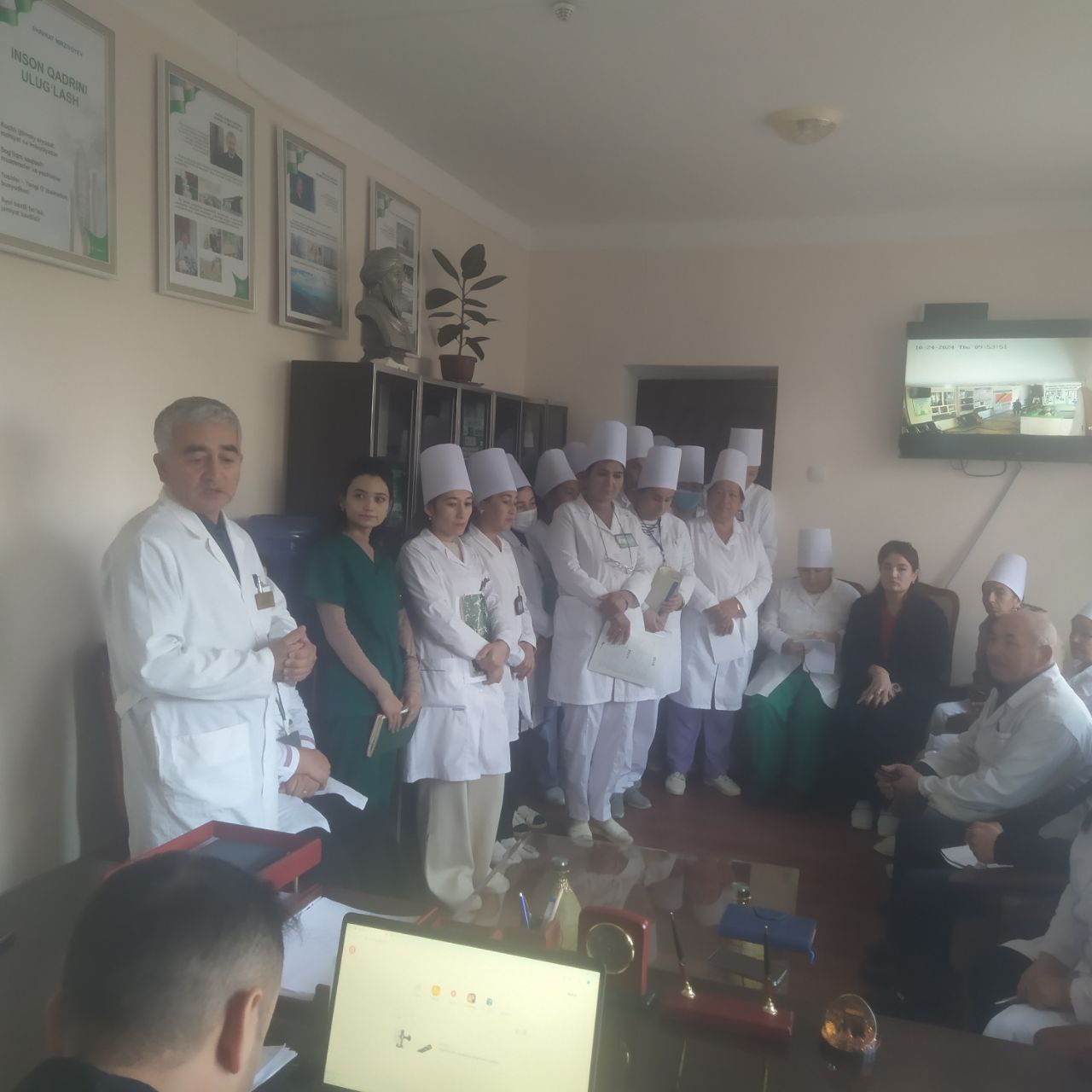 2024-yil 24-oktyabr kuni Аkademik Yo.X.To’raqulov nomidagi Respublika ixtisoslashtirilgan endokrinologiya ilmiy amaliy tibbiyot markazi Qashqadaryo filiali vrach endokrinologi A’zamov I.N tomonidan Nishon tuman tibbiyot birlashmasiga qarashli A.Qodirov OSHPga PQ-102-sonli qarori ijrosini taʼminlash, endokrinologiya yoʼnalishida olib borilayotgan isloxotlarni joriy etilishida soha mutaxassislarining maʼsulligini oʼrganish, hamda 40 yoshdan oshgan aholi o’rtasida tibbiy ko’rik bo’lib o’tdi. Tibbiyot birlashmasining oilaviy shifokorlariga, potranaj hamshiralariga skrining oʻtkazish tartibi tarqatma materiallar asosida tushintirildi. Patronaj hamshiralarga glyukometrlarni ishlatish tartiblari o’rgatildi.